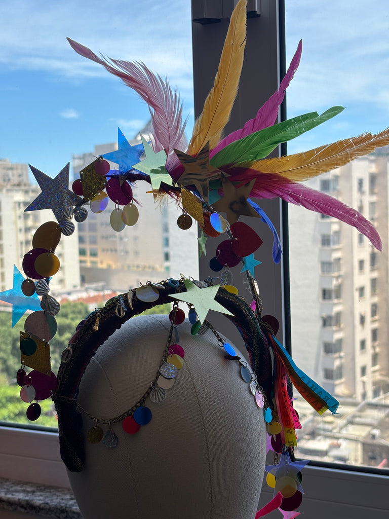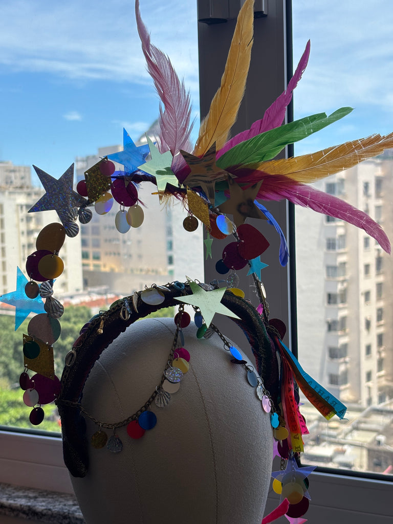 Arco forrado, feito a mão , com pedraria, brilho, paetê.